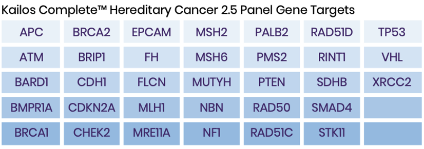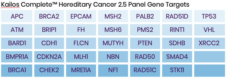 Kailos Complete™ Hereditary Cancer V2.5 Panel Gene Targets